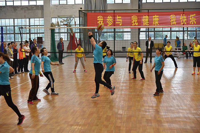 本网讯(校工会李平文,吴佑平图)10月29日下午,时值校运会刚刚闭幕之际,校教职工排球赛在花津校区北侧球馆内也圆满降下帷幕。比赛历时3周七天半,共有23个分工会组队参赛,参赛队员近 500人。