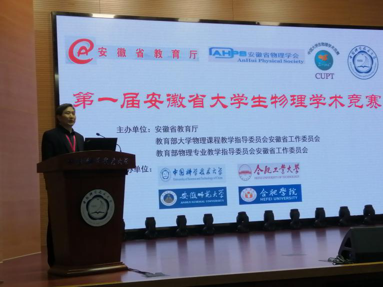 黄时中教授致辞时表示,安徽省大学生物理学术竞赛是中国大学生物理学术竞赛安徽代表队的选拔赛,已列入教育厅B类赛事。通过大学生物理竞赛这个平台,旨在锻炼大学生应用物理学知识分析问题、解决实际问题的能力,提升大学生的科研学术能力。