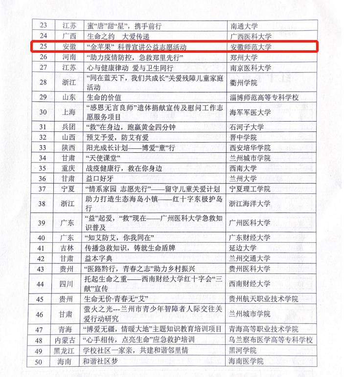刘冠琪 陈月)近日,中国红十字会总会公布2020年中国红十字青少年社会实践项目的评选结果函,全国共有50所高校获批立项,安徽师范大学免费色情片