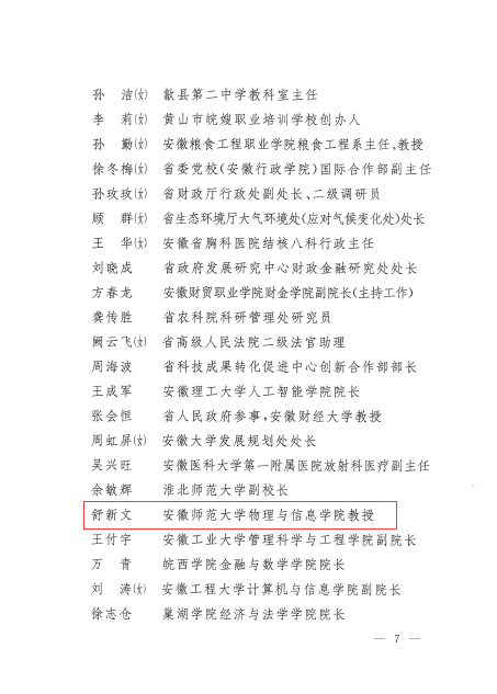 舒新文,九三学社社员,2010年7月参加工作,国家优秀青年基金获得者,安徽省青年皖江学者、学术与技术带头人。他组建了安徽师范大学时域天体物理研究团队,近5年承担了国家基金项目7项(含1项国家“优青”),科技部973项目子课题1项,团队获第24届安徽省青年五四奖章集体,2项成果被美国宇航局(NASA)和欧洲空间局网站公开报道,1项课题组论文被英国物理学会IOP出版社评为2019年度中国高引论文,发现迄今为止人类已知第二例双黑洞潮汐撕裂恒星罕见天文现象,被欧洲空间局网站选为“新闻和亮点”成果,并被《自然•通讯》杂志评为“天文学和行星科学”类2020年度亮点研究论文。作为中国科学院爱因斯坦探针卫星科学组成员,他参与了国家南极科考项目,为国家极区太空观测系统建设提供技术服务和数据支持。作为学校九三学社基层委副主委、芜湖市青年委员会委员,他积极参加“师大九三与青年学子共话成长”和九三社“百名专家乡村学堂讲科普”活动,为乡村中学师生们传播科学知识,以实际行动秉承、诠释了九三人“爱国、民主、科学”的优良传统和作风。
