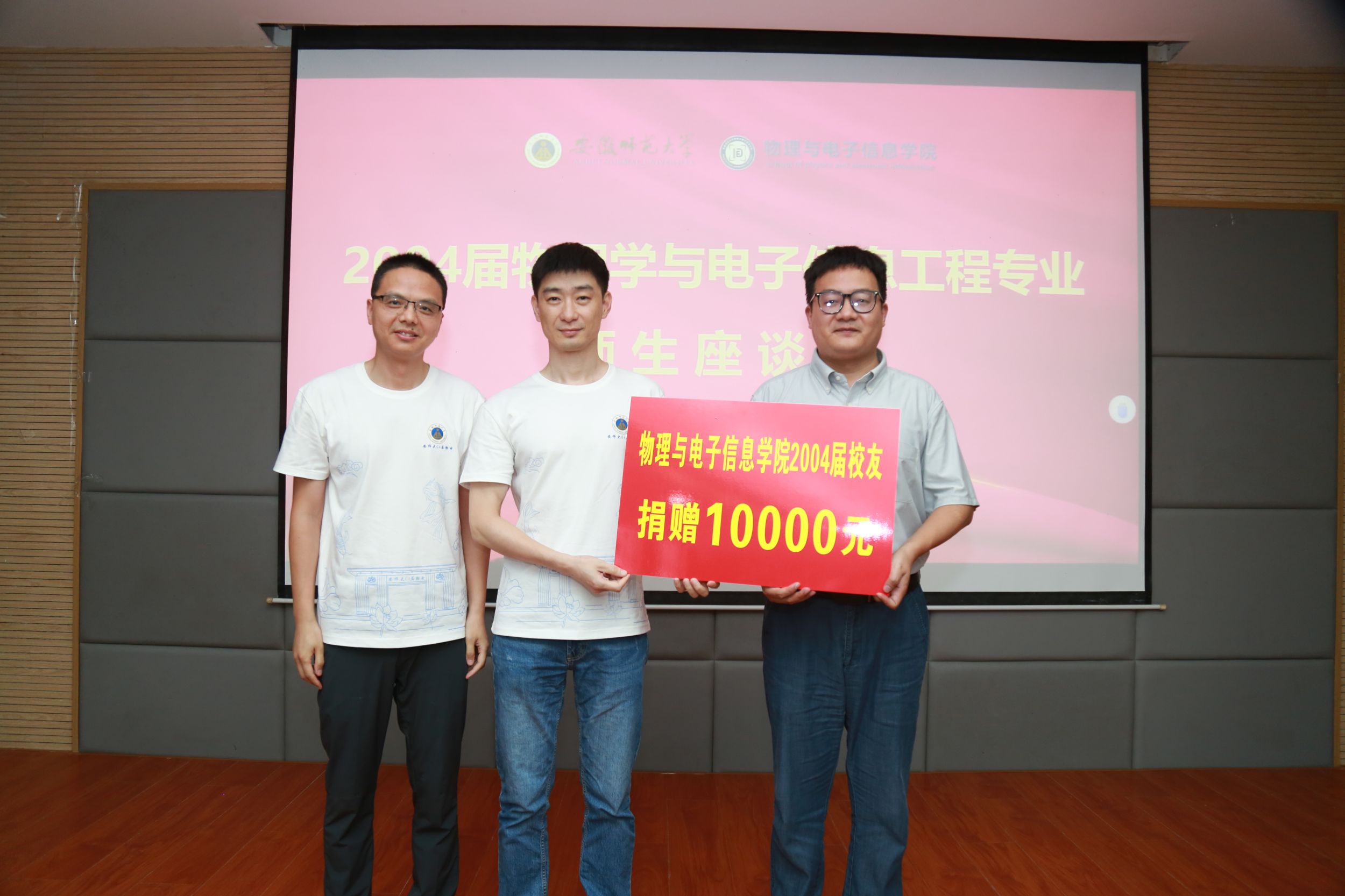 校友代表介绍了自己毕业后的生活和工作情况,回忆当时在校时的学习情况以及毕业后的奋斗经历,发言中对悉心培育的母校和耐心教导的老师以及四年里细心陪伴的同学们表示深切谢意,他们纷纷表示将继续怀揣着师大人的激情和梦想,奋勇拼搏,再创佳绩。座谈会期间,同学们向领导老师们赠献鲜花,并向学院捐赠10000元教育基金以表达对母校母院的感激和祝福。