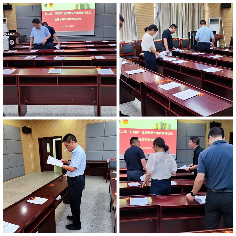 分赛别举办第二届“行知杯”金牌师范生素养展评活动。学院小学期特聘教授吴晓明、蔡胜国、王伟、黄浩、卢先立,副院长张爱清,物理学专业教师汪志荣、王长江、徐玲,学院团委书记张津源,小学期班主任刘敏、刘冠琪、刘燕、曹阳等参加活动。