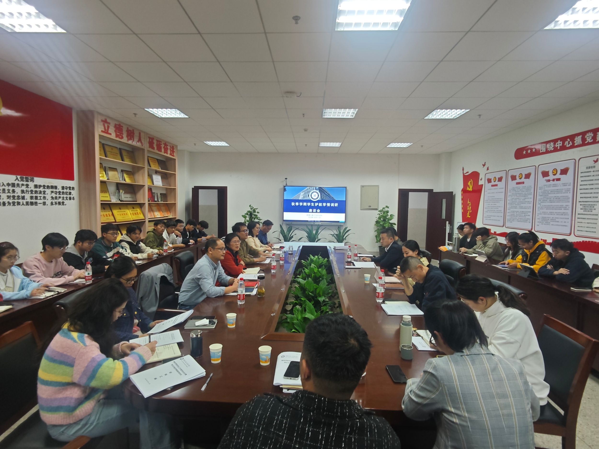 召开秋季学期学生护航学情调研座谈会,学院领导班子成员、专业负责人、相关秘书及全体本科生辅导员,各班级学生代表参加座谈会,会议由学院党委书记李娟主持。