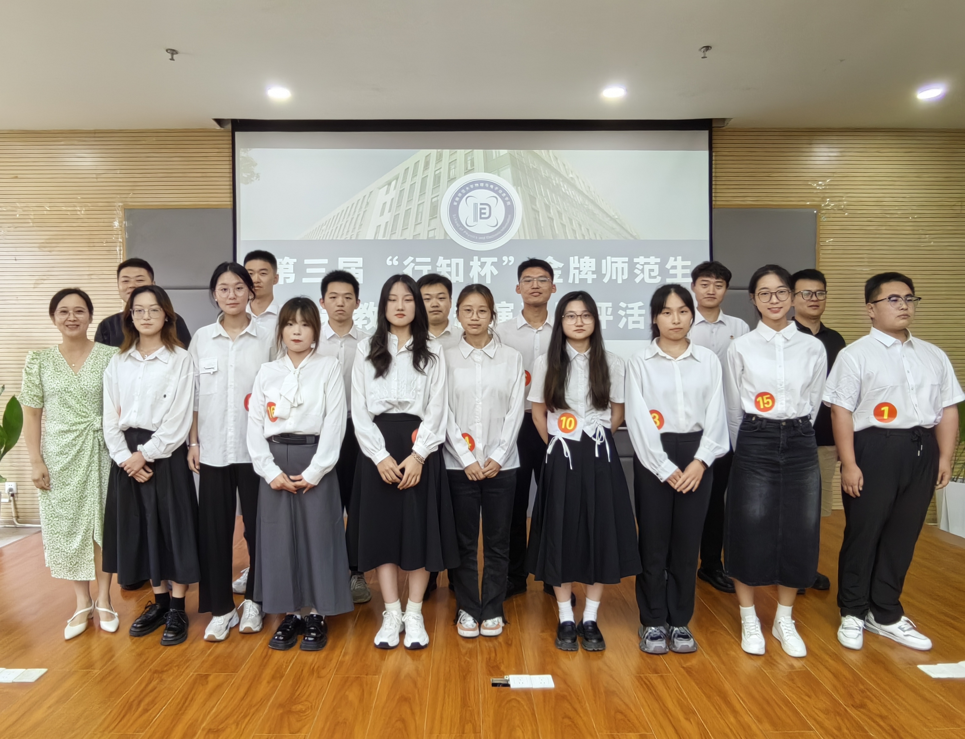 分赛别举办第三届“行知杯”金牌师范生素养展评活动。学院教学副院长张爱清,学院小学期特聘教师胡忠国、王伟、赵海燕,物理学专业教师汪志荣、王长江、徐玲、童大振、徐飞,学院团委书记布赫,物理学专业辅导员代表邹孝龙等出席本次活动。