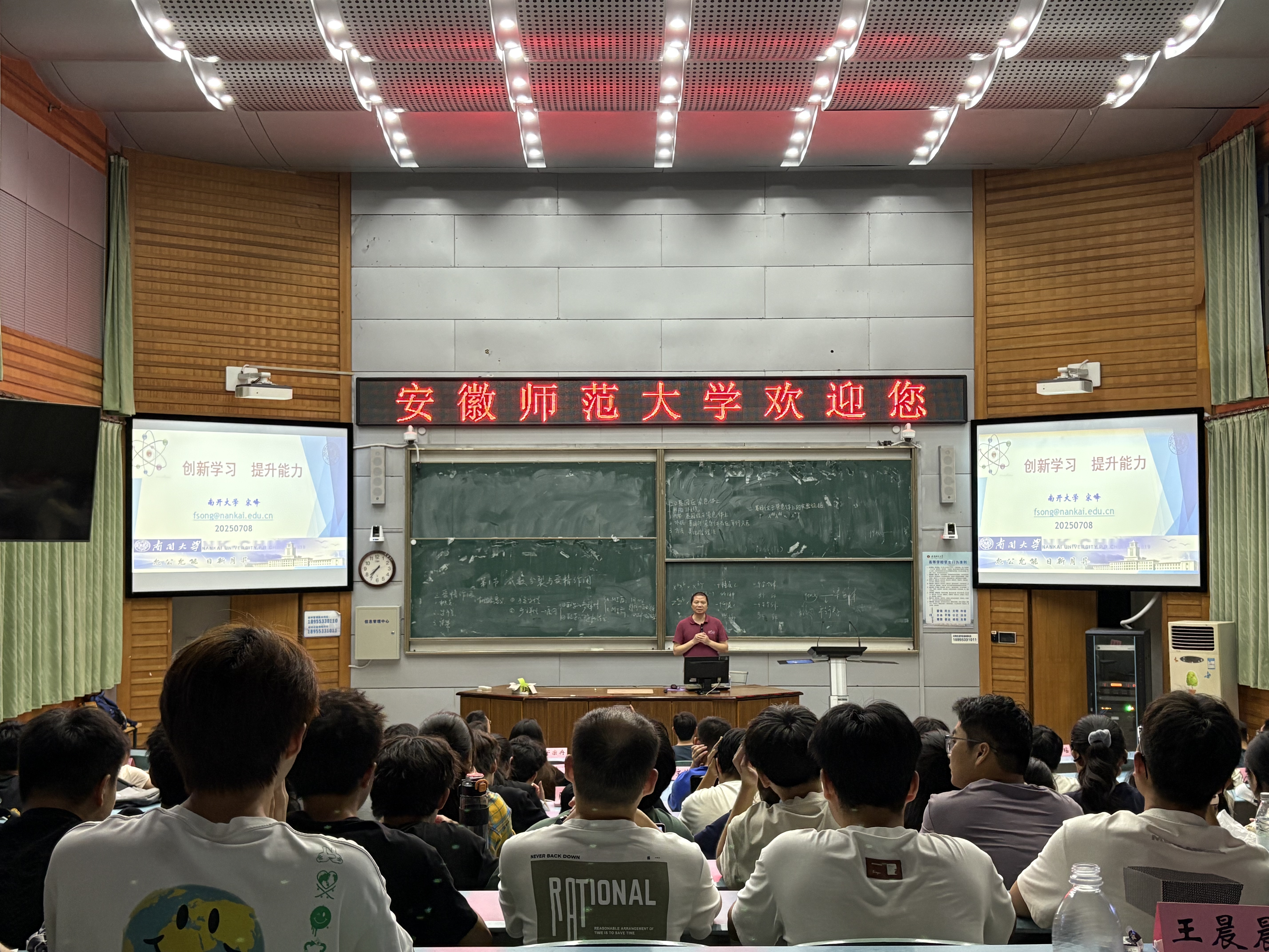 7月8日,宋峰老师作题为《创新学习,提升能力》专题辅导报告。讲座以物理奥赛为切入点,通过对国际国内物理奥赛试题的深入剖析,强调创新学习的重要性,阐明创新学习对提升思维能力、学习能力等的作用,以及对学习和科研的促进。他强调,作为物理学专业的师范生,要时刻保持学习状态,不断突破自我;要不断学习、不断思考、不断创新,提升教学能力,强化综合素养。
