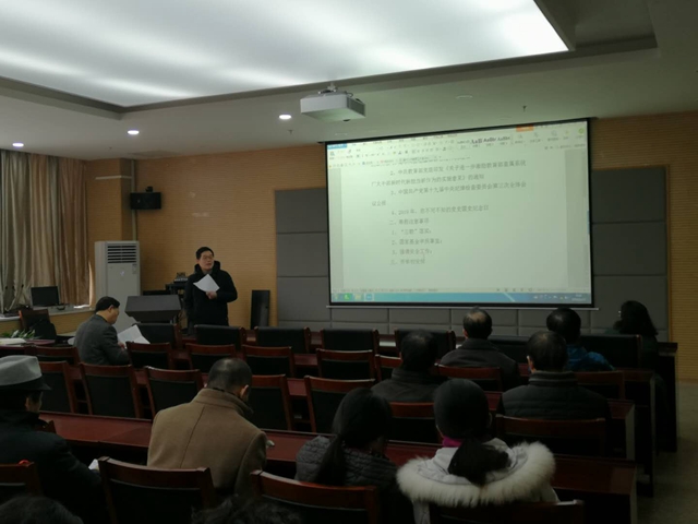 在物理楼304会议室召开教职工大会进行政治理论学习,学院全体教职工参加学习,学习会由学院党委书记李娟主持。