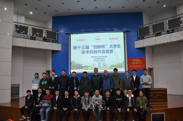 团委与电子爱好者协会共同举办的第十三届“创新杯”大学生学术科技作品竞赛。出席本次比赛的有校科研处科技服务部主任沈炎、校招生就业处学生档案室主任齐怀峰、院党委副书记黄友生、院专业教师方明星和陈卫松、工科实训主任蔺玉柱。赛学生及亲友团共300余人参加了现场活动。活动由辅导员刘冠琪主持。