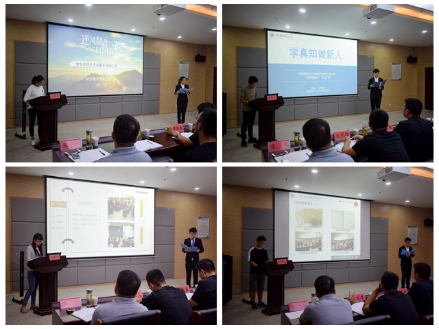 10位申报班级班长依次上台汇报,展示班级基础建设、特色工作和创新成果。17物理1班创设的班级工作监察委员会制度、“十分精彩”主题演讲有效地帮助同学们在方圆中增长才干,在活动中磨砺技能。17电子1班的校园文明行、25公里毅行拉练等特色活动不仅增进了同学友谊,也提高了班级凝聚力。16通信1班通过成立科创探究小组、举办举办党团活动让同学们在躬身实践中提高自我、坚定信念;他们积极组织班级成员参加无偿献血、义务支教等志愿活动,在奉献中感恩社会、回报社会。汇报会上,各参评班级展现出的优良的班风学风、丰硕的科创成果、团结的班级氛围,得到了评委老师和学干代表的一致肯定。