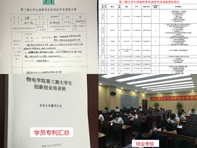自2016年 起尝试开展了大学生创新创业培训班,培训班以培养专业知识“精”、创新思维“活”、实践能力“强”的高素质创新型大学生为目标,以“培养创新意识,激发创 造潜力,实践创新过程”为培养步骤,以创造学理论、创新方法、创新实践和创业指导为培训内容,以“每日一设想、每日一交流、每人一创新、每期一专利”为措 施,七月份对学员进行强化培训,八月份学员自主学习与实践,九月份组织对学员进行结业考核后,培训班顺利结束并取得了良好成效。
