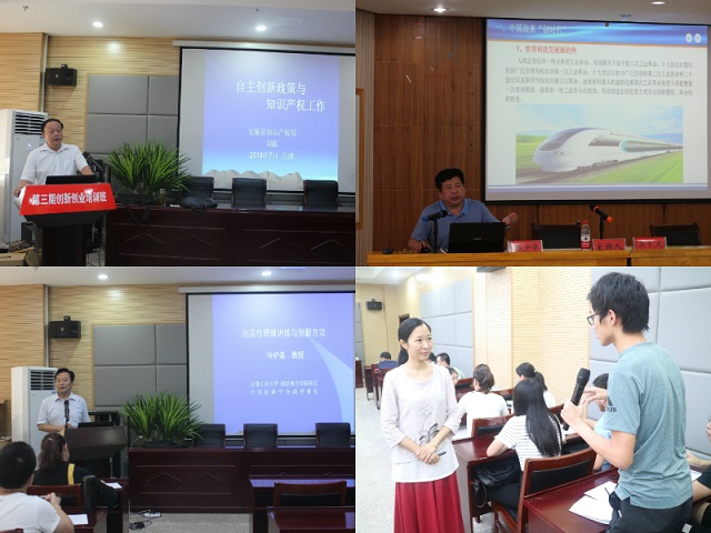 为帮助学员掌握创新创业方法,培训班科学编排课程,邀请安徽省知识产权局副局长刘栋、芜湖市知识产权局局长杨少华、安徽工业大学创新教育学院院长及中国创造 学会副理事长冷护基、安工大创新教育学院副教授陈霞、芜湖市专利代理公司专家、市孵化器专家、安徽师范大学朱向冰、王霞霞、陶海升,高级知识产权工程师吴 长义等一批校内外专家亲临培训班集中授课,课程包括创造性思维与方法、国家及安徽省知识产权发展形势与政策解读、创新方法与技能、专利文件撰写方法等理论 知识。教师把实践经验融入课堂教学,用亲身经验为学员讲解具体的创新创业问题,帮助学员掌握创新技能、熟悉创业基本流程和方法,提升学员综合素质。
