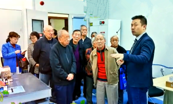 一楼大厅,老教师们在成果展示展板前驻足,了解学院近年来在学科建设、人才培养、科研成果等方面的亮眼成绩。在二楼科研实验室,重点实验室的负责人等纷纷向老教师们介绍了先进的实验设备、最新的科研方向与阶段性成果。