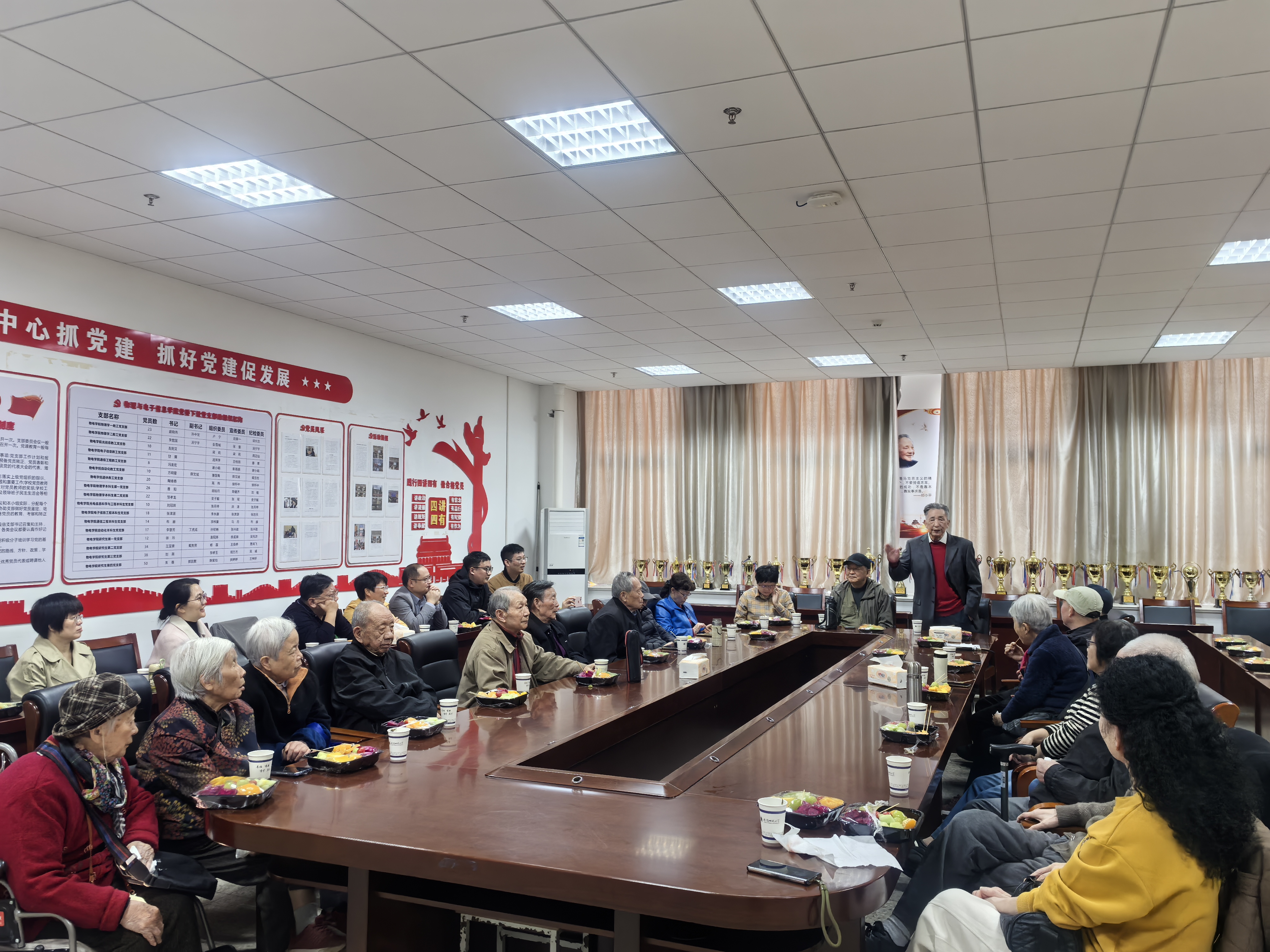 学院领导陪同老教师们一同前往教工食堂体验教工午餐,老教师们围坐在一起,继续畅谈校园趣事与生活近况,尽显“物电一家人”的温暖。