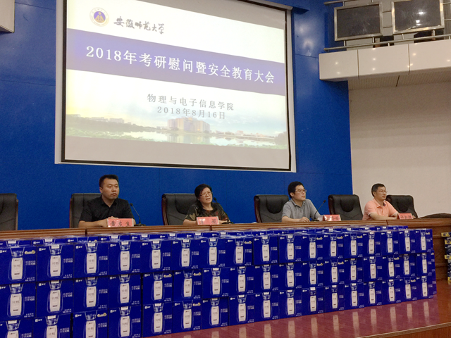 在敬文图书馆报告厅召开了2019届毕业生考研慰问暨安全教育大会。院党委书记李娟、院长郑贤锋、教学副院长许新胜、院党委副书记黄友生、毕业班辅导员及2019届200多位在校备考学子参加了此次大会。会议由李娟主持。