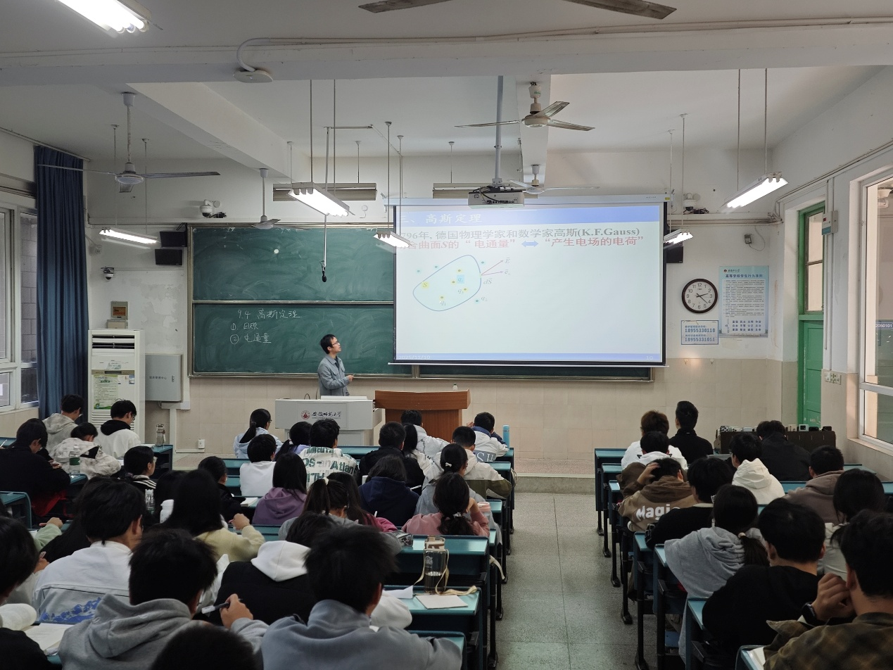 本次公开课围绕大学物理中“高斯定理”这一核心内容展开,精心设计了“对称电场回顾—电场通量概念—高斯定理表述—典型场景应用”四大教学环节,内容结构严谨清晰,循序渐进地引导学生走进电磁学的理论殿堂。在推导过程中,汪延志以“对称电场模型 + 微积分简化”为主线,将抽象的矢量分析转化为可视化的物理图像,再配合逐步展开的数学表达,将复杂运算巧妙化繁为简。学生不仅理解了高斯定理的物理本质,也建立了基于对称性快速求解电场的思维框架,为后续章节学习奠定了扎实基础。整堂课节奏张弛有度,逻辑严密而不失生动,充分体现了电磁学理论中简洁之美与对称之美。