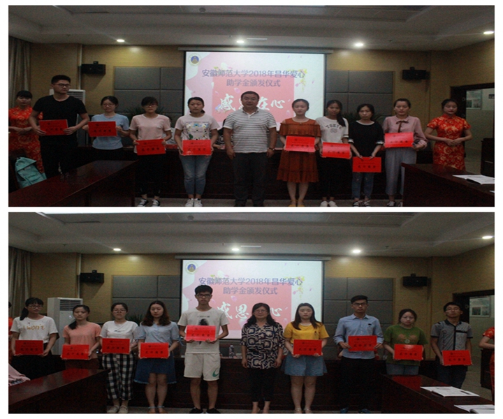 在院335会议室举办了2018年安徽师范大学教育基金会昌华爱心助学金颁发仪式。出席颁发仪式的有校信息管理中心主任史铁杰,免费色情片