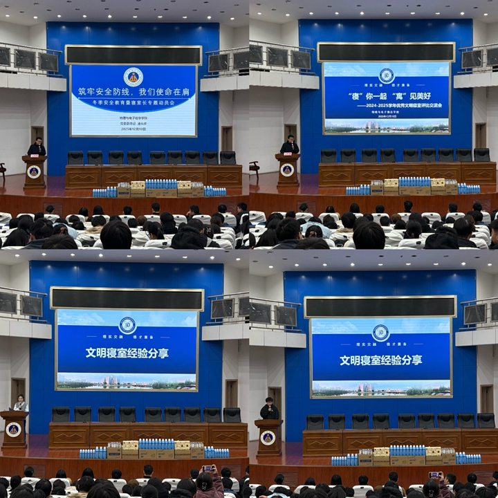 会上通报了本学年文明寝室创建情况,并对涌现出的优秀寝室进行表彰。2023级物理学(师范)专业李笑笑、2024级自动化专业李杰作为获奖代表,分别分享了寝室在内务整理、室友协作、氛围营造等方面的实践经验,阐述了文明寝室对促进学习、融洽关系、提升凝聚力的积极意义。凌从祥与全体辅导员为荣获学院一、二、三等奖的寝室代表颁发证书与奖品,鼓励同学们以先进为榜样,共建整洁、温馨、和谐的寝室家园。