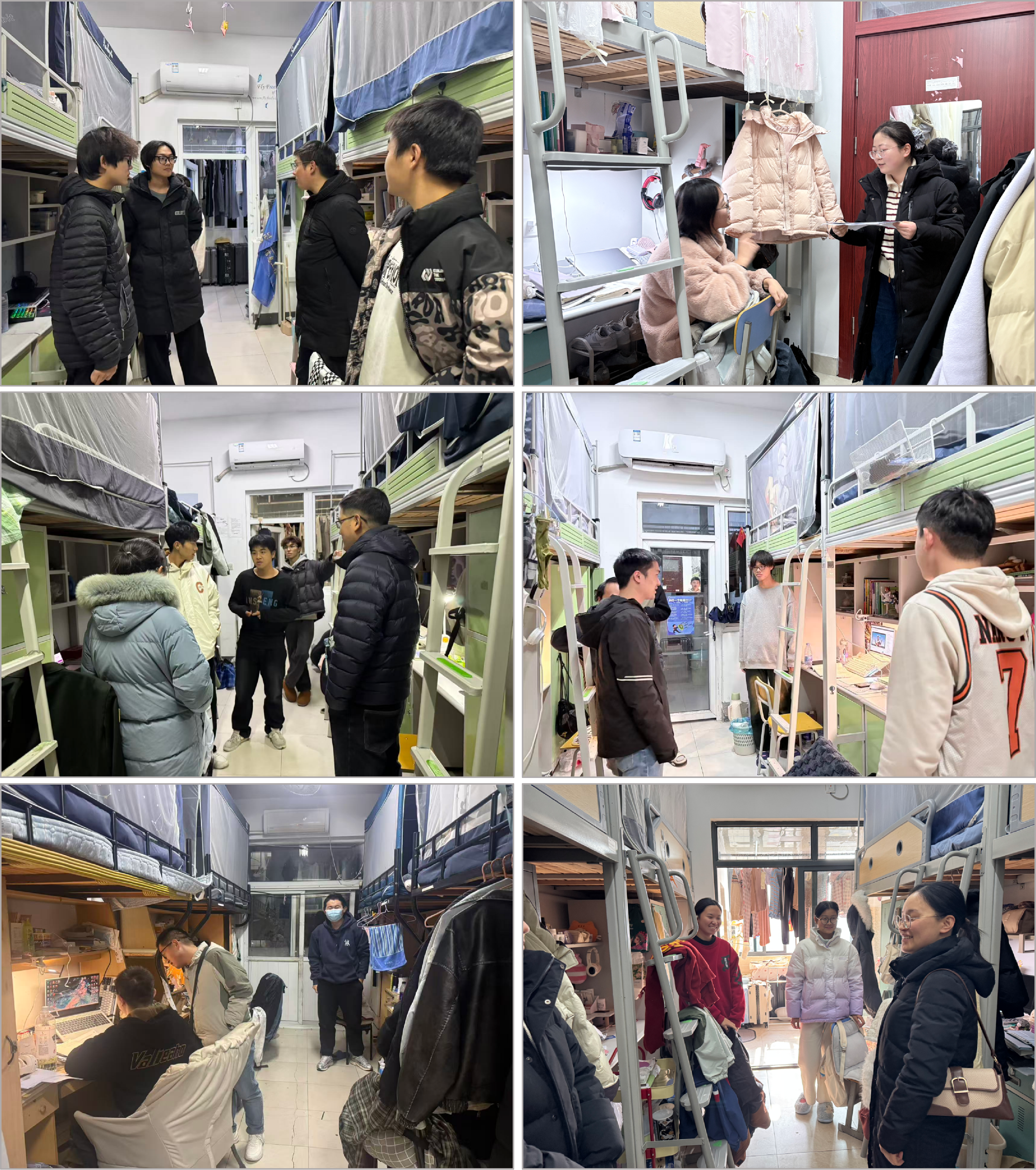 宿舍走访排险,传递温情关怀。学院领导、班主任及辅导员组成专项工作组,分批次全覆盖走访学生宿舍。重点核查内务卫生、用电安全及消防隐患,严肃重申“严禁违规电器、私拉电线、明火使用”要求,现场整改隐患。走访中,师生面对面交流,询问复习进度、思想动态与生活需求,解答学业困惑,叮嘱科学规划时间,让宿舍走访成为传递关怀的 “暖心桥梁”。