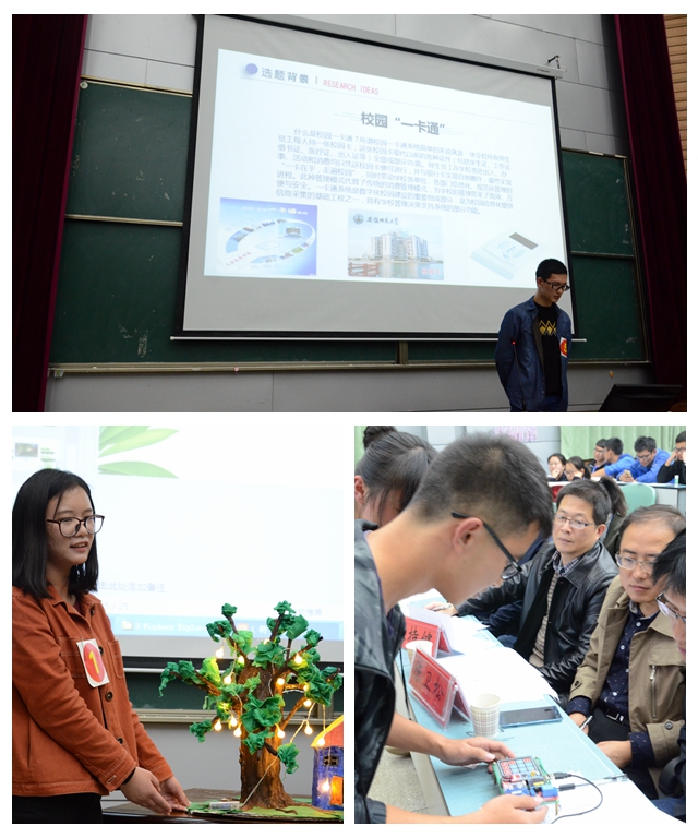决赛下半场,非专业组同学作品同样创意十足。来自文学院黄鑫同学展示了由她们宿舍四人共同完成的创意作品“树下小屋”,创造过程充分体现出团结协助、刻苦创新的精神;美术学院曹凯凯同学的“玄艺鸟” 作品精致,结合了古代文化和现代文化元素,寓意丰富;来自数计学院张家豪与其他三名队友,通过自己自学的Java编程制作了“校园卡管理系统”,在过程中他们勇于创新,勇于尝试设计,学以致用。