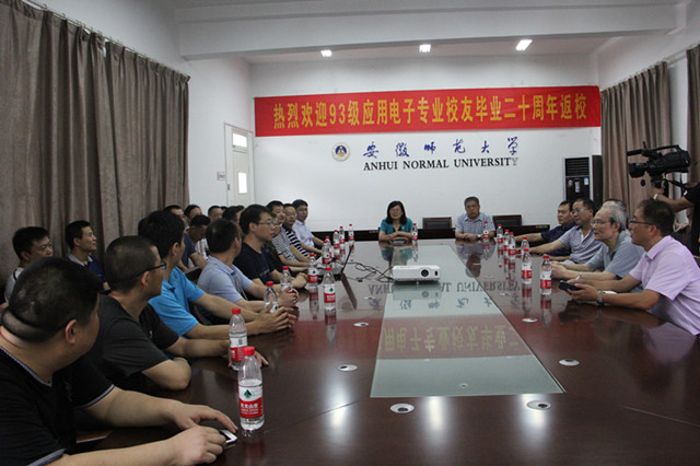 1993级应用电子技术专业20多名校友校友带着阔别20年的思念,怀着喜悦激动的心情,载着五湖四海的芬芳,重返母校怀抱。上午10点30分,在综合楼五楼第二会议室召开了师生座谈会,学院党委书记李娟、院长崔执凤、党委副书记吴长义以及时任教师危启正、凤尔银、喻其山、王元航、张持健等5位老师参加了此次返校座谈会。