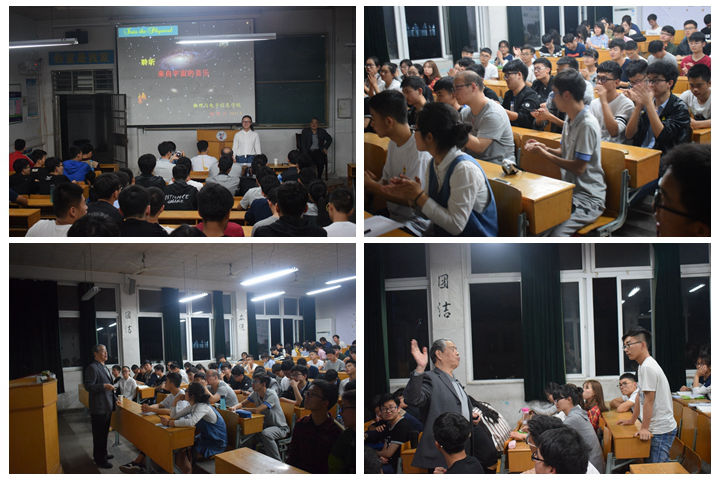 陆同兴教授从我们所处的银河系讲起,进而讲到宇宙的浩瀚与无垠,带领同学们回顾了宇宙长达137亿年的演化过程。他指出,我们虽然生活在这美丽而富有生机地球上,其实只是浩瀚宇宙中微小的一份子。接着他介绍了引力波以及检测引力波的基本方法和工具,引力波是来自十三亿光年之外的遥远宇宙空间,由两个黑洞碰撞,合并所引发的的时空涟漪。引力波的探测对人类,对宇宙的天文学发展具有深远的意义,它证实了爱因斯坦的广义相对论,为人类开启了研究和探索宇宙的新窗口,引力波琴弦所演奏的音乐不是天籁,却胜似天籁。陆教授希望中国的大学生---未来社会主义事业的接班人和建设者,应注重对天文学的了解,增强对天文学重要性的认知。