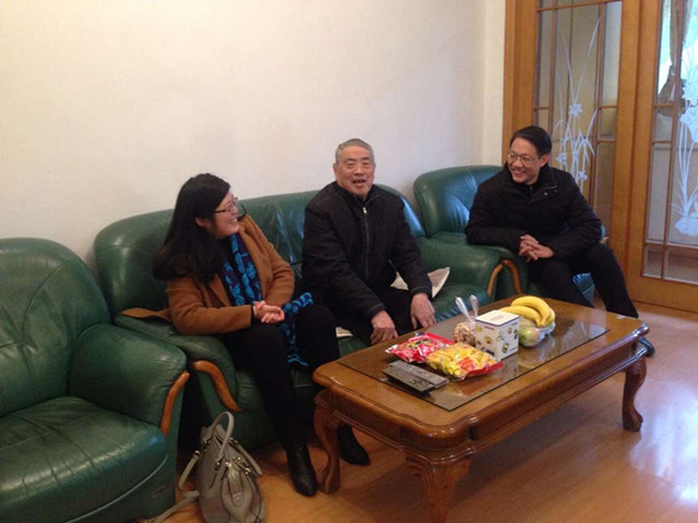 1月19日上午,院党委书记李娟、教学副院长崔光磊在党委秘书王梦晓的陪同下看望了陆同兴、严祖同、王行翔、黄玉春、方凤兰等5位老教师;院党委副书记吴长义、行政副院长张其芳、科研副院长郑贤锋先后看望了崔可范、温业美等2位老教师。在老教师家,院领导与他们亲切交谈、嘘寒问暖,关切询问老教师们的生活和身体状况,向他们介绍了近年来学院工作的成绩,感谢他们曾经为学院发展所做的贡献,希望他们要保重身体,健康长寿,并向老教师及其家人表达新春祝福。