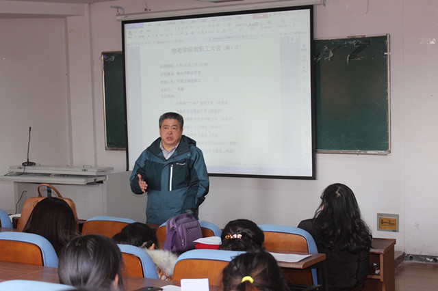 “十三五”规划,总结了“十二五”学院事业发展的情况,分析了“十三五”学院事业发展面临的形势,并从发展指导思想、发展目标、任务与举措、保障措施、核心办学指标等几个方面详细论述了学院事业发展规划。他强调学院在“十三五”期间将坚持“教学立院,科研强院,人才兴院”的办院理念,以学科发展和师资队伍建设为重点,以申报理科一级学科博士点、工科一级学科硕士点,建设省级科研平台为抓手,把促进学生全面发展作为学院一切工作的出发点和落脚点,把立德树人作为学院发展的根本任务,把科技创新作为驱动学院发展的根本动力,把优化学科结构与布局作为学院发展的必由之路,把强化专业内涵和特色建设作为提升学院核心竞争力的关键,力争将学院建设成为一个特色鲜明的理工交融的高水平学院。他号召广大教职工要以实施“十三五”事业发展规划为契机,把个人职业发展融入到学院事业发展中来,积极主动为学院“十三五”事业发展规划的实施落实建言献策,共同开创学院事业发展的新局面。