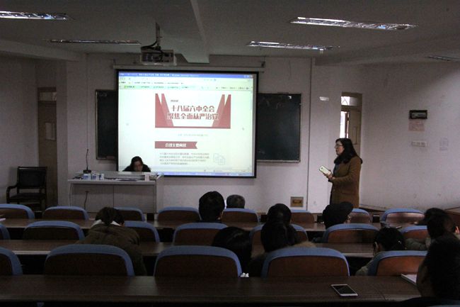 组织召开教职工理论学习会,传达学习中国共产党第十八届中央委员会第六次全体会议精神和安徽省第十次党代会精神,布置近期学院各项工作。学院领导班子、全体教职工参加会议,院党委书记李娟主持。