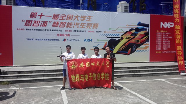 的3位学生:赵安、盛启明和李睿智(指导老师:蔺玉柱、曲立国),该组在安徽赛区比赛中获得一等奖(位列该组第三名),最终在双车追逐组取得全国总决赛二等奖。