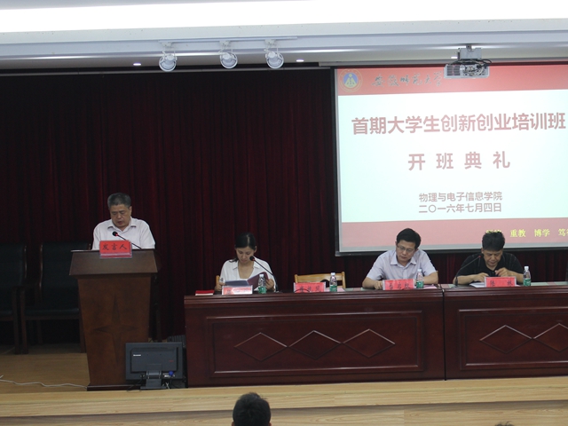 在培养创新人才方面所做的工作。他指出随着我国经济社会的不断发展、综合国力的持续提升,已经逐渐从学习利用人类已有成果,转变成引领世界科技发展潮流、更加注重原始创造的科技创新型强国,党的十八届五中全会提出的五大发展理念,创新发展居于首位,进一步说明了创新的重要性。大学是推动科技发展的生力军和创新型人才培养的桥头堡,大学应该明确自己扮演的角色和人才培养的价值观、着力点,师大高度重视大学生创新创业教育工作,全校开展了12项涉及学生“双创”类的项目或活动。全体学员能够有幸加入学校创新创业的大家庭中,既要真学实干,刻苦专研,也要有当代大学生的创新情怀和科学精神,有责任、有义务将创新火种传递给更多的人。
