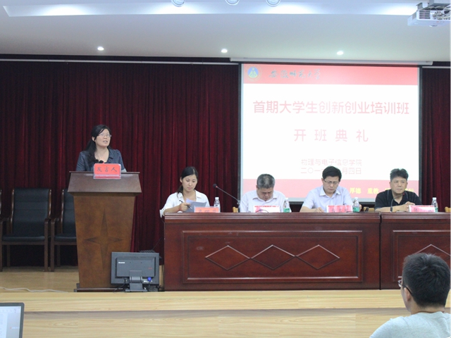 在赭山校区图书馆报告厅隆重举行首期大学生创新创业培训班开班典礼。校科研处处长陆林、学生处处长台启权、团委书记梁燕、教务处副处长黄亮、学院党委书记李娟、院长崔执凤,合肥市高吉知识产权管理有限公司总经理吴明华,首期培训班全体学员、学生科技创新骨干等出席了开班典礼,典礼由学院党委副书记吴长义主持。