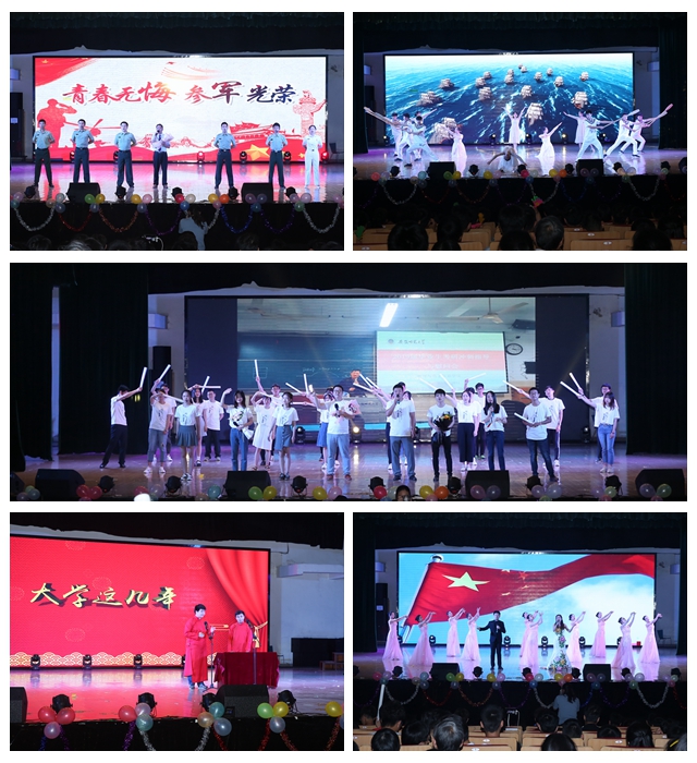 【新使命·勇于担当】承赤子心、勇于担当。歌伴舞《飞云之下》用悠扬的歌声和曼妙的舞姿吸引着全场观众。现代舞《扬帆起航》让现场观众直观感受暴风雨后的彩虹。军歌嘹亮,学院行政院长张其芳老师和退伍大学生们一曲《骆驼草》,唱响了军人们的铮铮铁骨,激发起了物电学子投笔从戎、保家卫国的一腔热血。