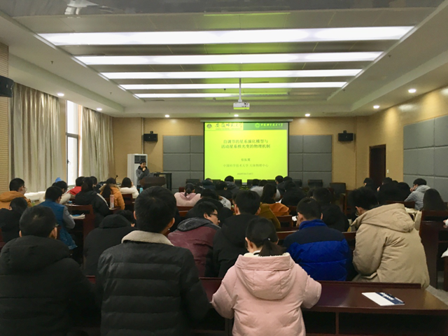 院长郑贤锋教授主持,学院相关教师以及物理学专业研究生参加了报告会。