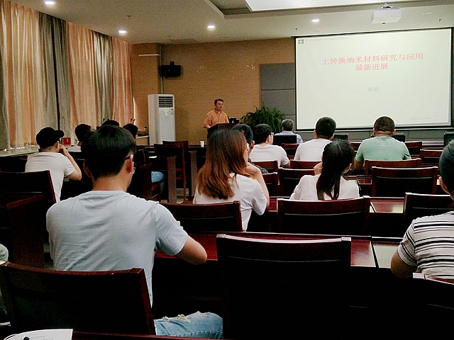 本次报告中,张宏教授首先介绍了上转换纳米材料的研究背景和意义;随后介绍了纳米技术所带动的上转换纳米材料研究,同时讲述了上转换发光动力学机理的新认识和发光衰减的调控、非掺体系高效上转换发光的实现以及利用体内化学反应结合纳米材料和载药。最后,张宏教授鼓励我们要独立思考,大胆创新,勇于提问质疑。报告会结束后,与会的各位老师和同学们就自己关心的问题与张宏教授展开了深入的交流和讨论。