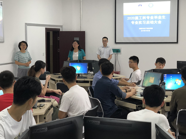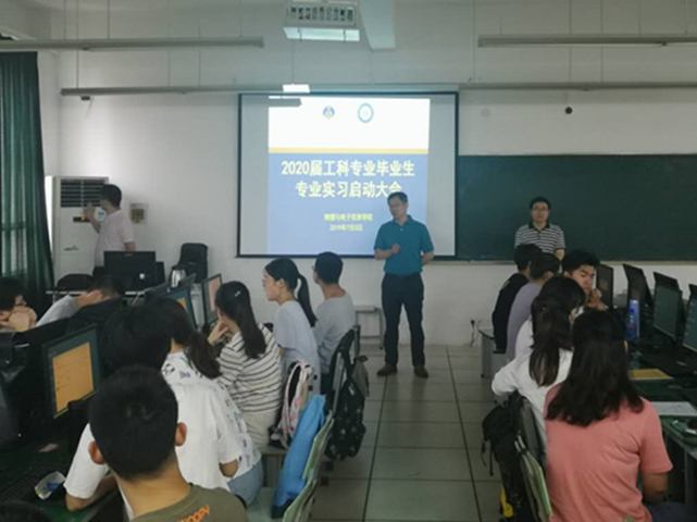 学院于7月3日上午在各实习场所组织了2016级学生专业实习动员大会。学院党委书记李娟、党委副书记黄友生、副院长许新胜、2016级本科生辅导员、实习公司的工程师按照实习分组情况组成三支小分队赴教学楼、物理楼实验机房、实训中心开展动员讲话。