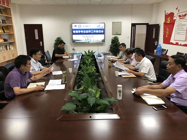 于7月8日在308会议室召开了物理学专业评估工作推进会。学院副院长许新胜、党委副书记黄友生、副院长张其芳、物理学专业负责人舒新文、理学实验中心主任张先燚、理论与计算物理教研室主任张季谦、教师教育教研室主任汪志荣以及学院教学秘书汪光麒、王晓霞参加了会议,会议由教学副院长许新胜主持。