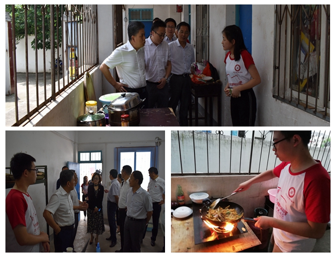 陆林一行刚抵达学校便前往队员宿舍,详细询问队员住宿、饮食情况,了解到团队每日三餐采取队员轮流做饭方式,现场的领导老师都给予学生高度赞扬,并鼓励队员们要珍惜这样锻炼生活能力的实践机会。随后,陆林一行走进了支教团队授课的教室,课堂上正在开展的是物理课教学,队员们向领导老师们介绍了此次支教课程内容的安排以及队员们的备课、开课情况。陆林听完队员的讲解后表示现阶段的初中生不能仅接受文化课程的学习,艺体类课程也应并行,洲头中学实践团队这样形式多样的综合类教学模式应当坚持并推广。