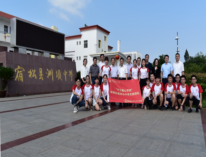 “千方爱心学校”赴宿松县洲头中学支教团队师生。宿松县人民政府副县长张永西,教育局副局长谢雯,安师大附属复兴中学校长程六三,洲头中学校长江小艳等参加慰问。