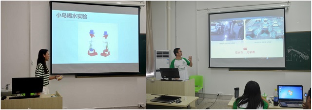 实践期间,志愿者们奔赴支教课堂,促进科学普及。5G时代、量子通信、AI智能……一个个深奥难懂的科学名词在队员的讲解下变得通俗易懂。结合宣讲主题,团队利用电脑或者实物来搭建模型,形成“我点你学”的教学方式,将抽象的科学知识变得可视化、可操作化,让青少年在趣味互动中激发兴趣,拓宽视野,增强科学意识,用心助力乡村科普教育。