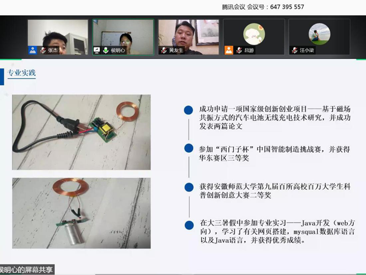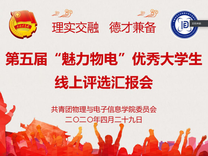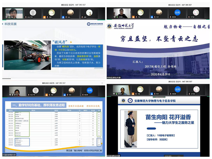 举办第五届“魅力物电”优秀大学生线上评选展示活动。学院党委副书记黄友生,专业教师汪志荣、甘露、冯友宏、周正仙、杜友武以及本科生全体专兼职辅导员担任评委。汇报会由辅导员张杰主持。
