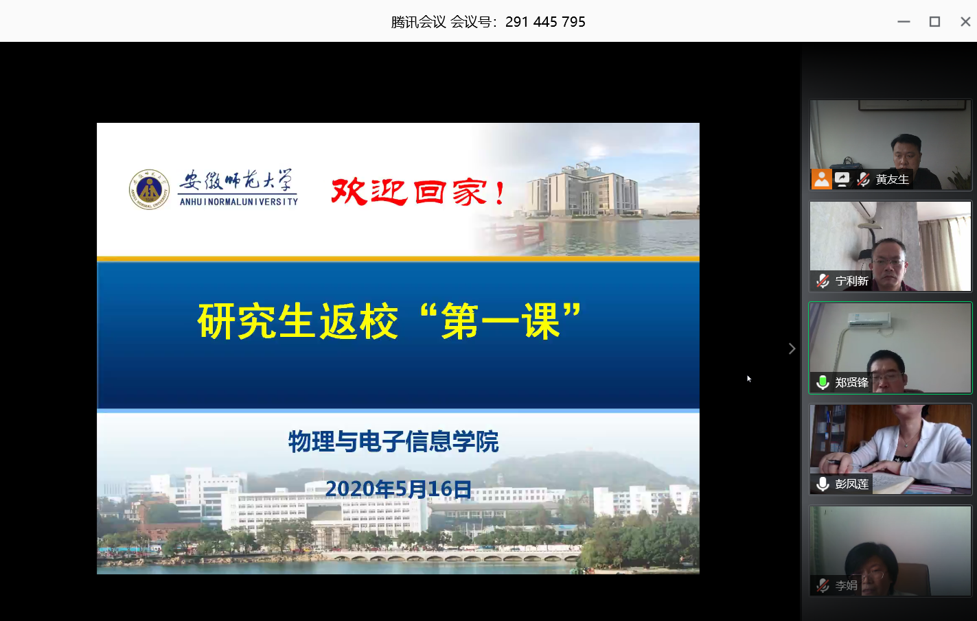 召开线上研究生返校“第一课”暨疫情防控专题培训会。副校长彭凤莲出席会议并对首批学生返校提出具体要求,研究生院院长席贻龙,学院领导李娟、郑贤锋、宁利新、黄友生、研究生辅导员及学院50名返校同学参加第一课,会议由院长郑贤锋主持。