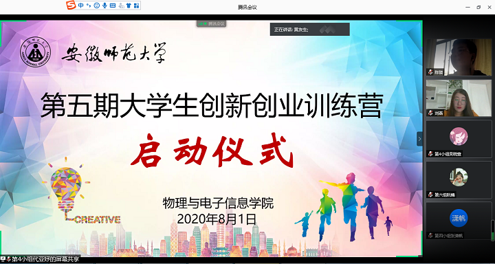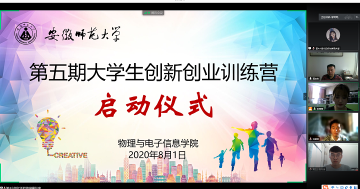 承办的第五期大学生暑期创新创业训练营利用线上平台正式启动。校创新创业学院副院长李汪根、校科研处副处长王朝辉、校团委副书记陈骁、院党委副书记黄友生出席启动仪式,院团委书记宋凤楼、辅导员刘燕、张津源以及来自于11个学院的62名学员和学院科技创新骨干参加启动仪式。启动仪式由李琦琦主持。