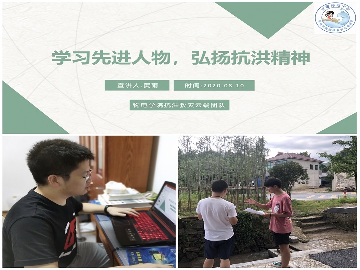 团队采取线上线下、由点及面的方式,深入基层开展金苹果防汛科普宣讲。截至8月10日,团队已推出“科技防汛”、“科普讲堂”、“先进人物事迹”三期微团课宣讲,把讲堂搬上云端屏幕,累计受众人数达到300余人。2018级通信工程韩吉祥线下同步走访广德市部分社区沿岸居民、街道学生学习室,耐心讲解防汛知识,使科普宣讲有温度、够深度、入人心。