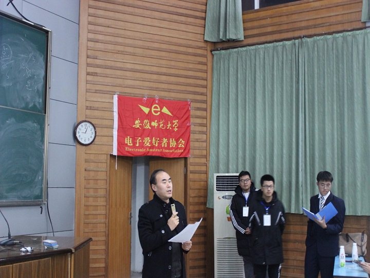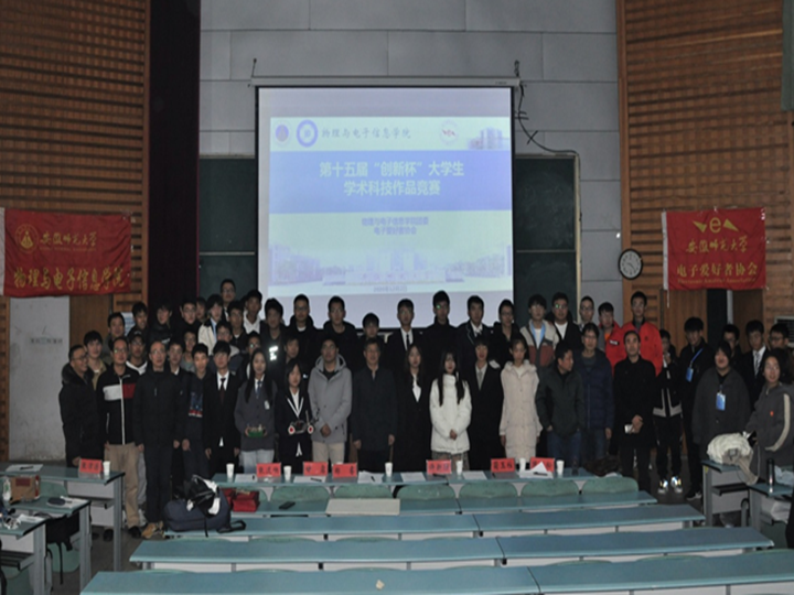 团委与电子爱好者协会共同承办的第十五届“创新杯”大学生学术科技作品竞赛在行知楼2010105顺利举行。学院副院长许新胜、自动化专业负责人郑睿、工科实训主任蔺玉柱、院团委副书记甘露、学院专业教师张道秧、陈卫松、陶文海、参赛选手及亲友团共计200余人参加现场活动。