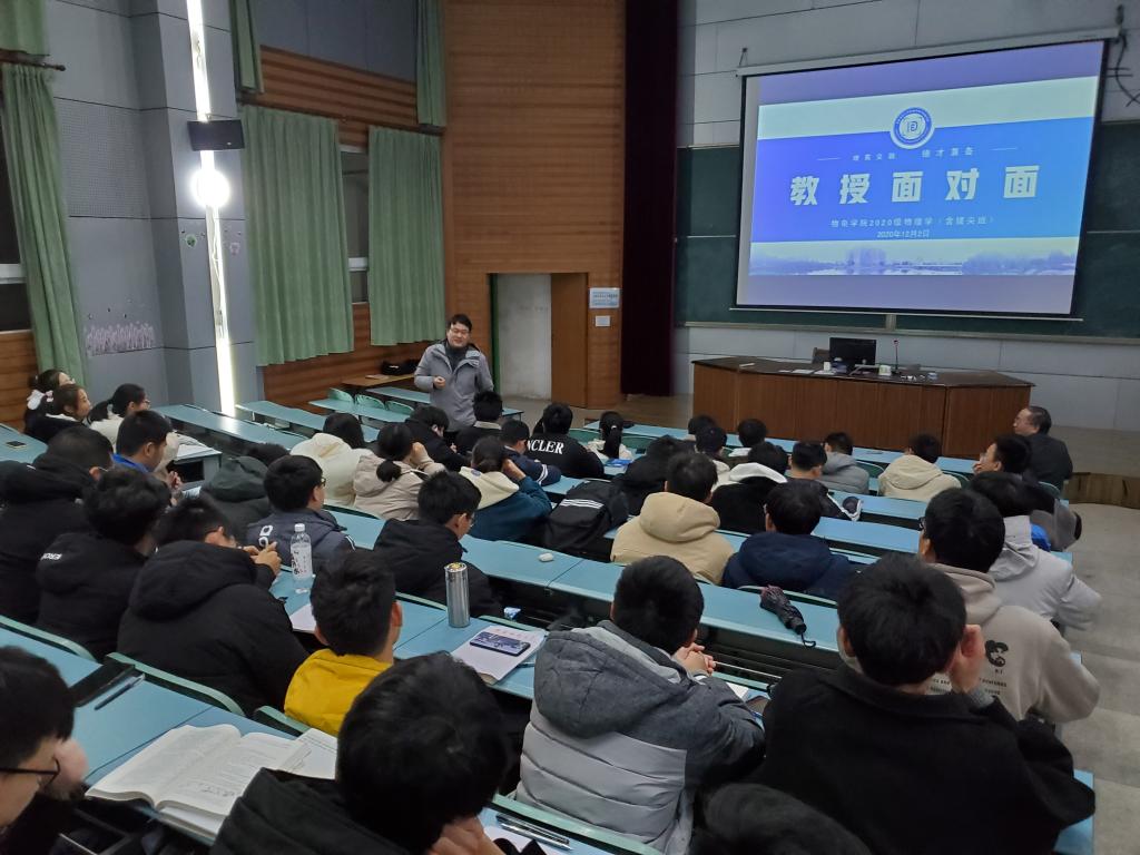 通过学院育人品牌——“教授面对面”精准开展了新生专业教育辅导。学院凤尔银教授和吕建平教授作为嘉宾通过座谈交流的形式,围绕学生专业学习、生活适应、人际交往等方面与20级物理学师范专业和拔尖班同学开展了深度交流。辅导员汪光麒主持了交流会。