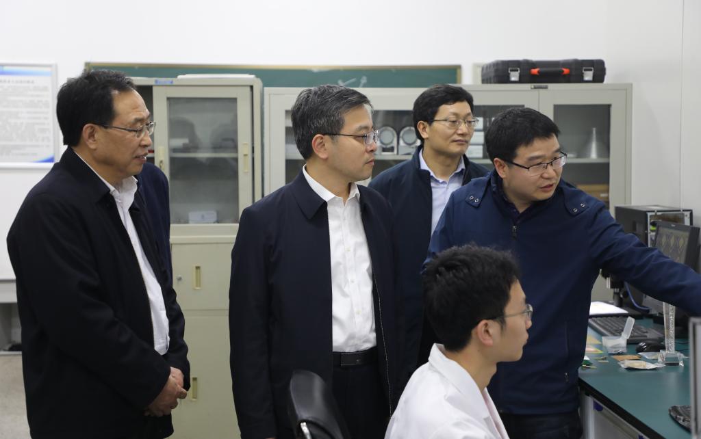听完郑贤锋汇报完后,何淳宽一行走进实验室,看望专家教授并深切交流。随后,到学校召开座谈会,提出了具体工作要求。