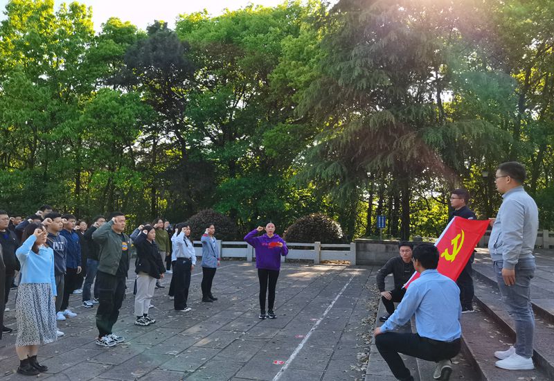 师生满怀敬畏,来到烈士陵园,庄严肃立在烈士纪念碑前,向烈士陵墓敬献花圈、默哀致敬,表达哀思。优秀研究生带领全体人员重温入党誓词,接受党性洗礼。