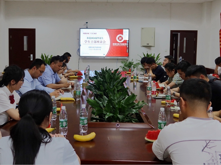 关怀满满,“师生互动”珍藏美好。一次班会忆往昔,15日,召开全体毕业生返校及文明离校主题班会,为毕业生再上一堂人生课,引导毕业生在回味大学时光的同时不忘初心,继续前行。一次座谈话别离,16日下午,学院召开学生干部交流座谈会,传承学团工作的优良传统,对学生干部的出色表现和辛勤付出表示肯定与感谢。一声珍重谢师恩,17、18日,学院召开毕业生“最后一课”暨分专业师生座谈欢送会,院领导、专业教师参会人员超过40人,畅谈大学生活,送去临别祝福。一次党课话初心,18日上午,召开毕业班党员组织生活会,视频学习习近平总书记考察清华大学重要讲话,学院党委副书记黄友生带领毕业班党员重温入党誓词。