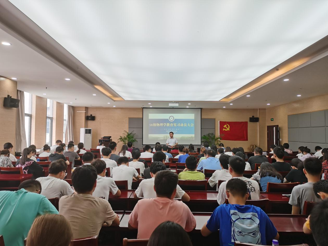 于物理楼304会议室召开2018级物理学(师范)专业教育实习动员大会。院党委副书记黄友生、教学副院长张爱清、实习指导教师及2018物理学(师范)专业全体同学参会。