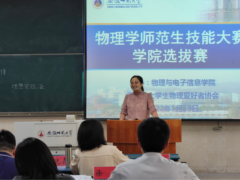 历来高度重视师范生的教学技能培养,通过搭建师范生技能训练的平台,坚持以赛促学、以赛代练,做强做优物理师范品牌。本次大赛为师范生提供了展现自身教学技能的舞台,促进了同学们之间的相互交流,对低年级同学的专业学习也具有重要的引领和示范作用。