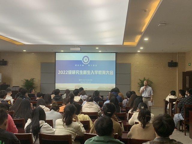 学院分管研究生工作的副院长宁利新教授向新生介绍了各专业的研究生培养方案,阐述了学院对各方向研究生发展规划,并就如何和导师沟通,如何更好更快地投入科研工作做了指导,希望新生尽快适应研究生生活,将注意力放在科研与学习上